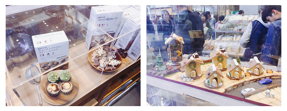 小編過了天橋後選擇最近了最接近的入口。真的很多人。第一樣看到的是放在透明箱內的迷你聖誕村。它們全都人手製作和可食的。大家可以買材料包,在家裡製作。