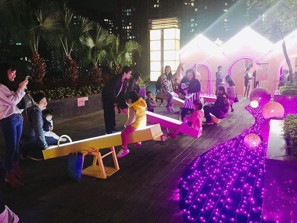 一入到去,眼前的花園被整片粉紅色的LED燈包圍,感覺真係相當浪漫!浪漫的氣氛除左有燈飾的配置外,當然唔少得一眾浪漫派的動物同建設啦!就等小編帶你逐個捉!